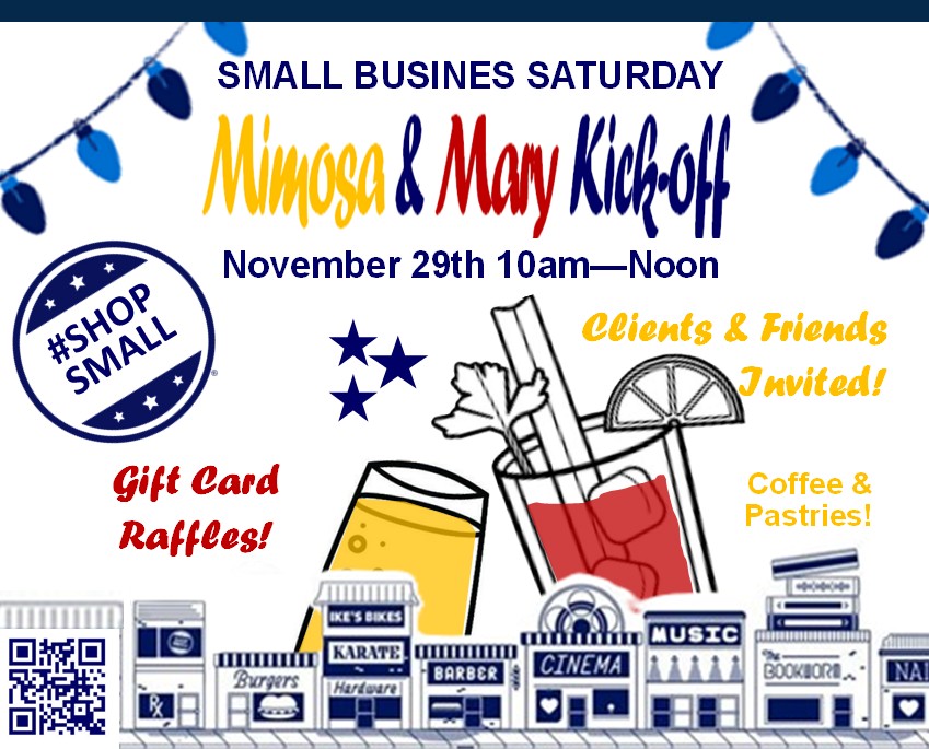 Mimosa & Mary Small Business Saturday Kickoff - November 29, 2025, from 10am to Noon.